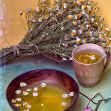 Ingin mencerahkan rambut? Teh chamomile bisa membantu, terutama bagi yang sudah memiliki rambut pirang. Untuk menggunakannya, seduh 1/2 cangkir bunga chamomile dalam air mendidih, biarkan selama setengah jam hingga larut dan dingin, lalu saring bunganya. Setelah keramas, tuangkan teh yang sudah diseduh ke rambut yang masih lembap sebanyak 10 kali agar merata.